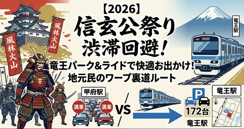 【2026】信玄公祭りの渋滞を回避!駐車場難民を救う「竜王パーク&ライド」と地元民のワープ裏道ルート